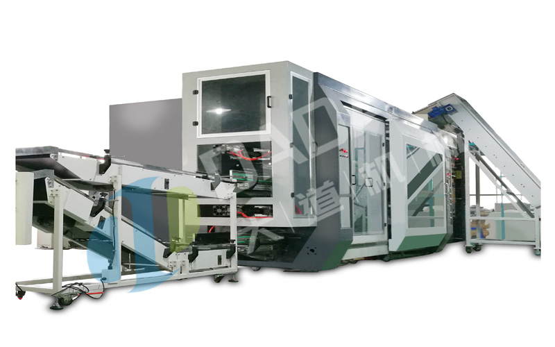 350m/min、左右開(kāi)門(mén)式消音罩、液壓導(dǎo)軌式無(wú)軸上料、原料電動(dòng)左右移位、不停機(jī)自動(dòng)貼標(biāo)、伺服微張力控